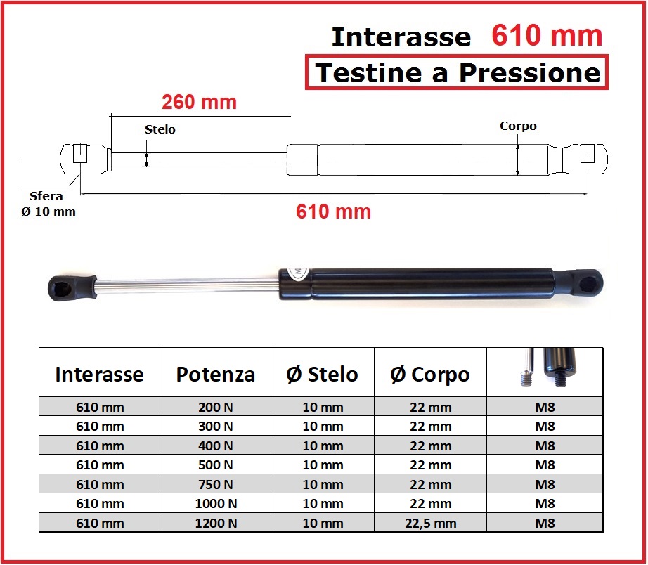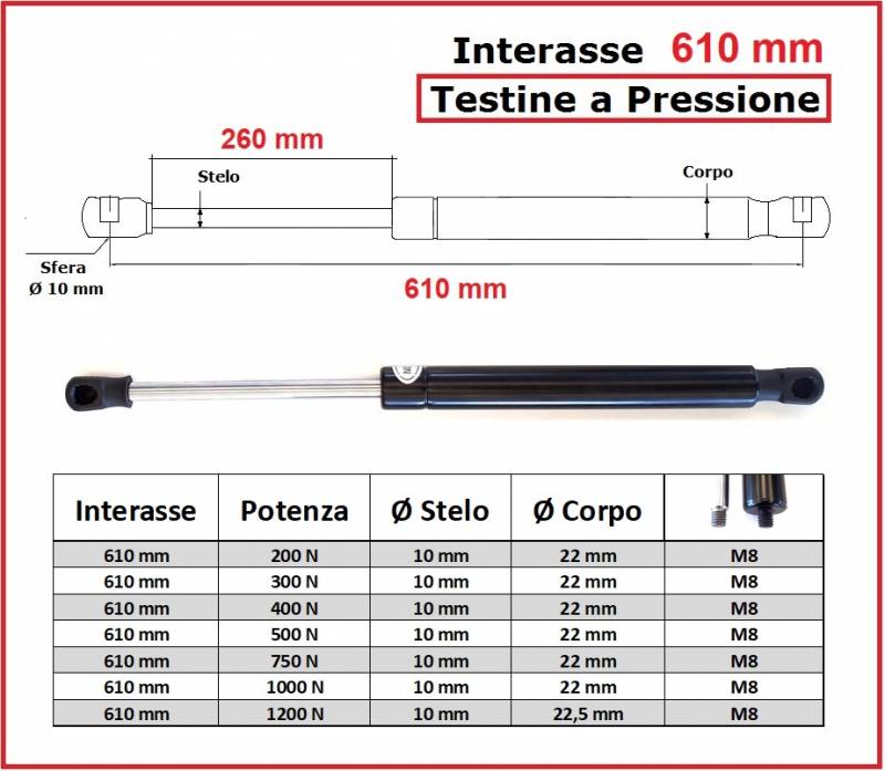 End Fitting Options: Eyelet Ø8.2 mm or Quick-Type end fitting