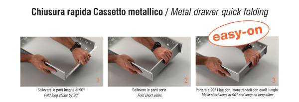 Thanks to the flat supply and easy assembly, STM's 4-sided metal drawer saves time and space during assembly and storage, simplifying logistics and reducing management costs. Consult the technical data sheet for more detailed information.